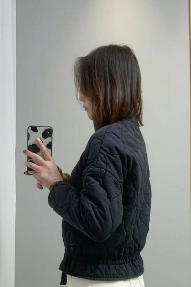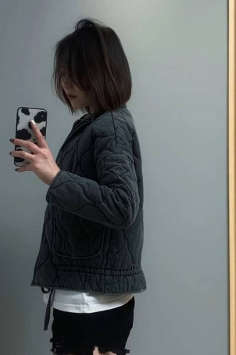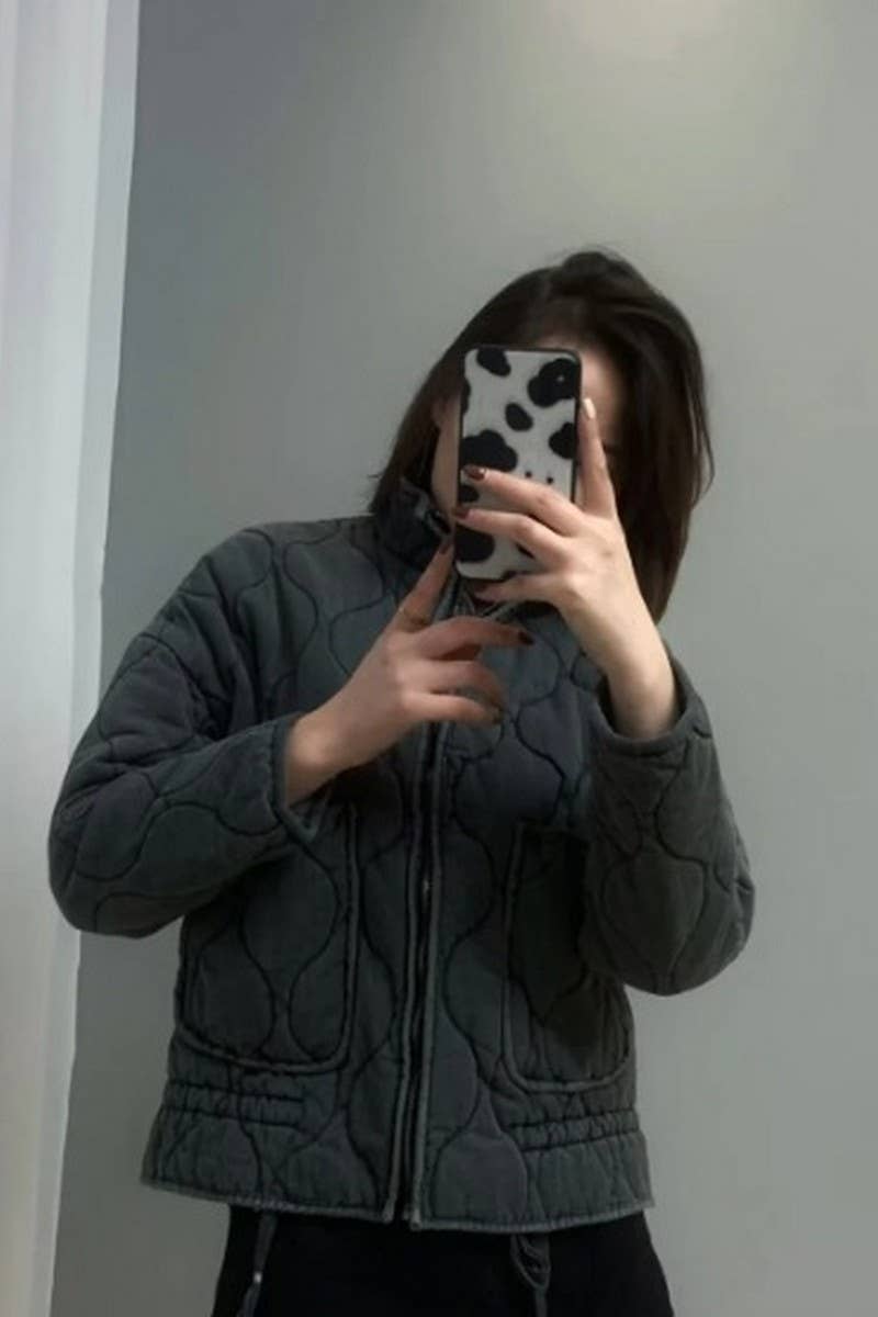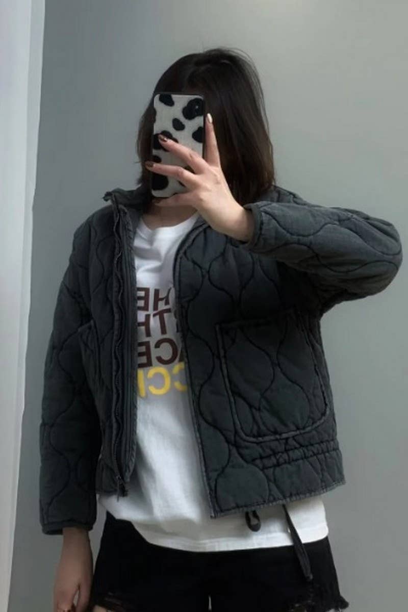 STAND COLLAR LARGE POCKET QUILTED COTTON COAT