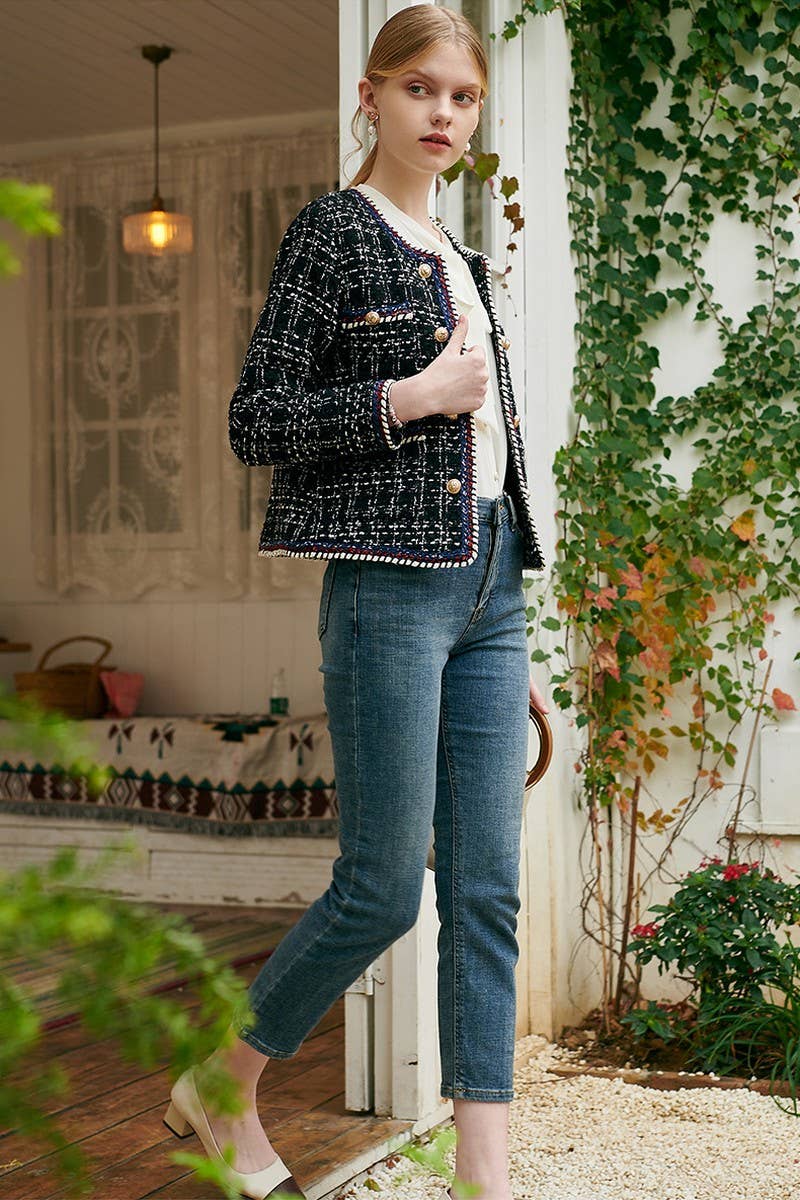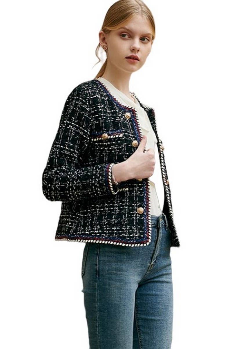 BLACK AND WHITE CHECK DOUBLE-BREASTED COATS