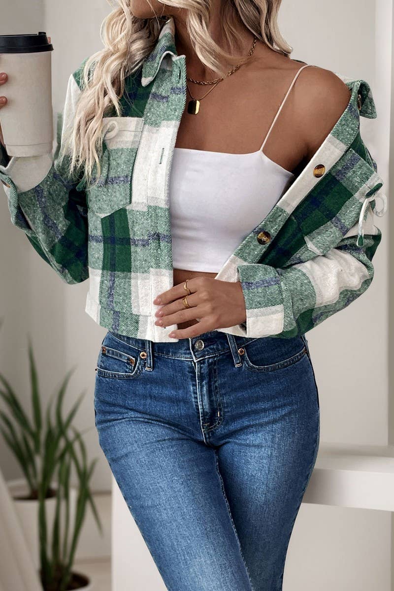 AUTUMN AND WINTER SHORT PLAID RETRO BOW COAT
