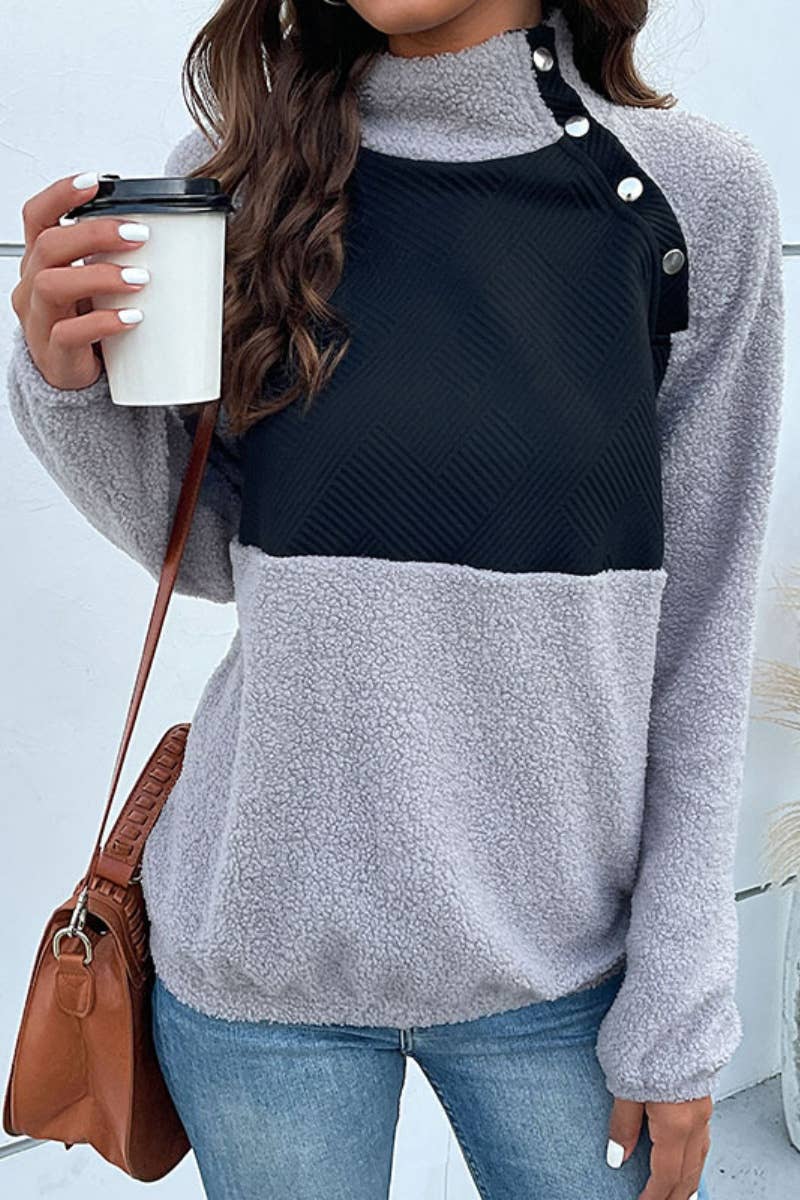 VINTAGE PLUSH PATCHWORK BUTTON LONG-SLEEVED TOP