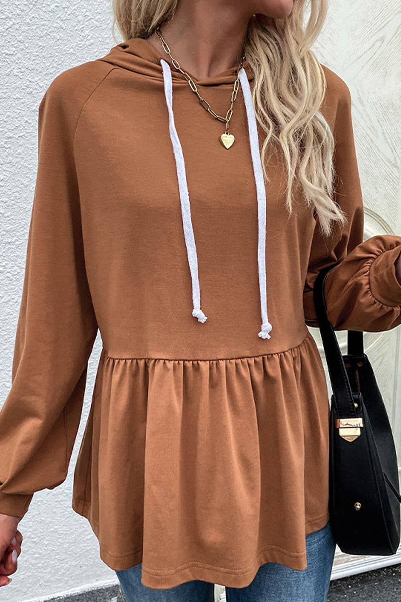 MULTICOLOR DESIGN HOODED SOLID COLOR SWEATSHIRT