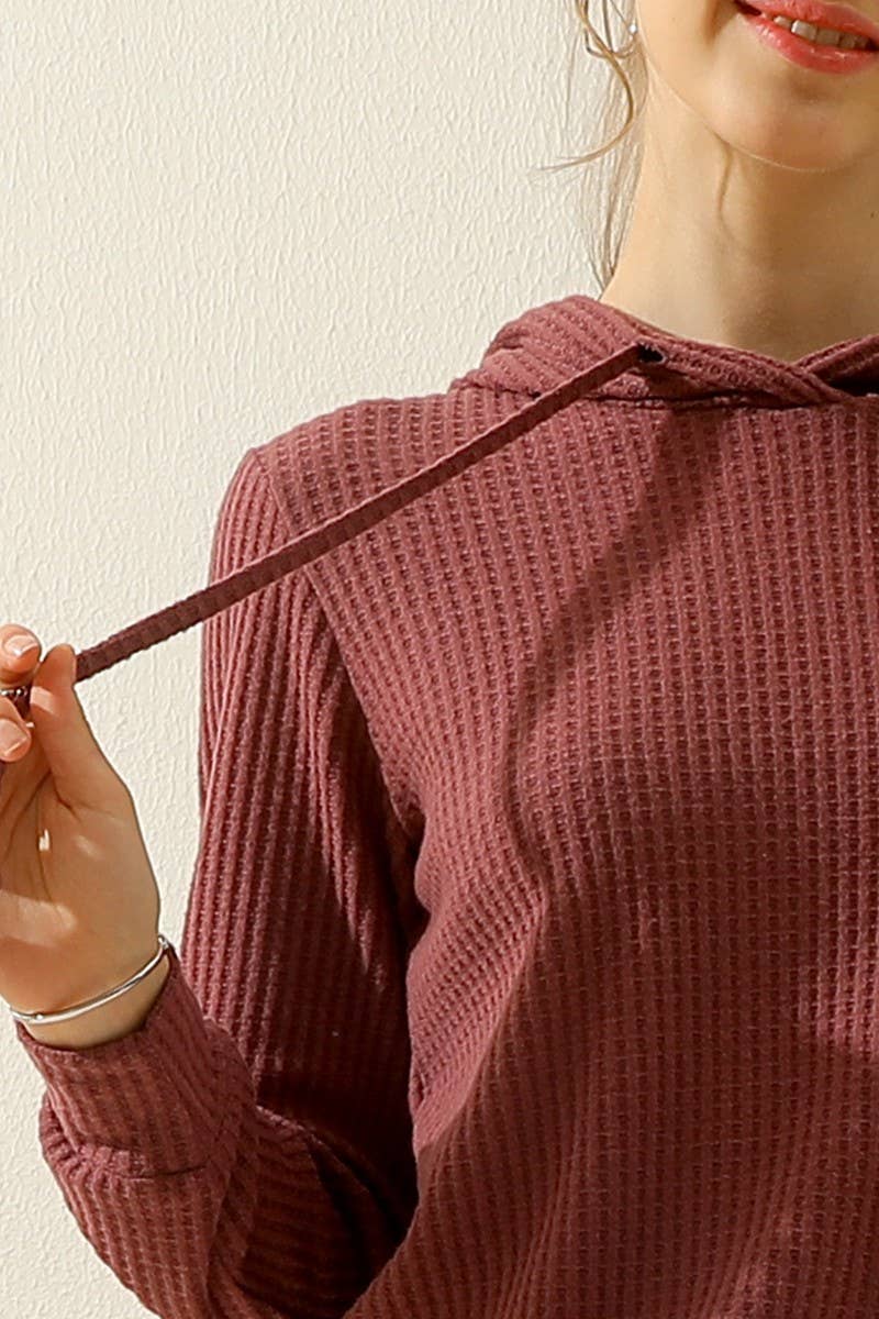 HOODED WAFFLE KNIT SWEATER TOP LOUNGE WEAR