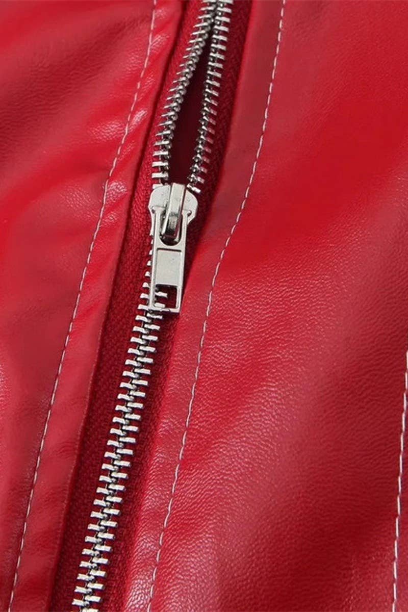 SOLID LOOSE FIT ZIP-UP MOTORCYCLE JACKET