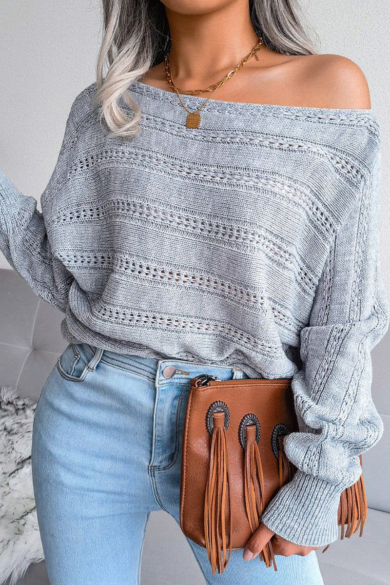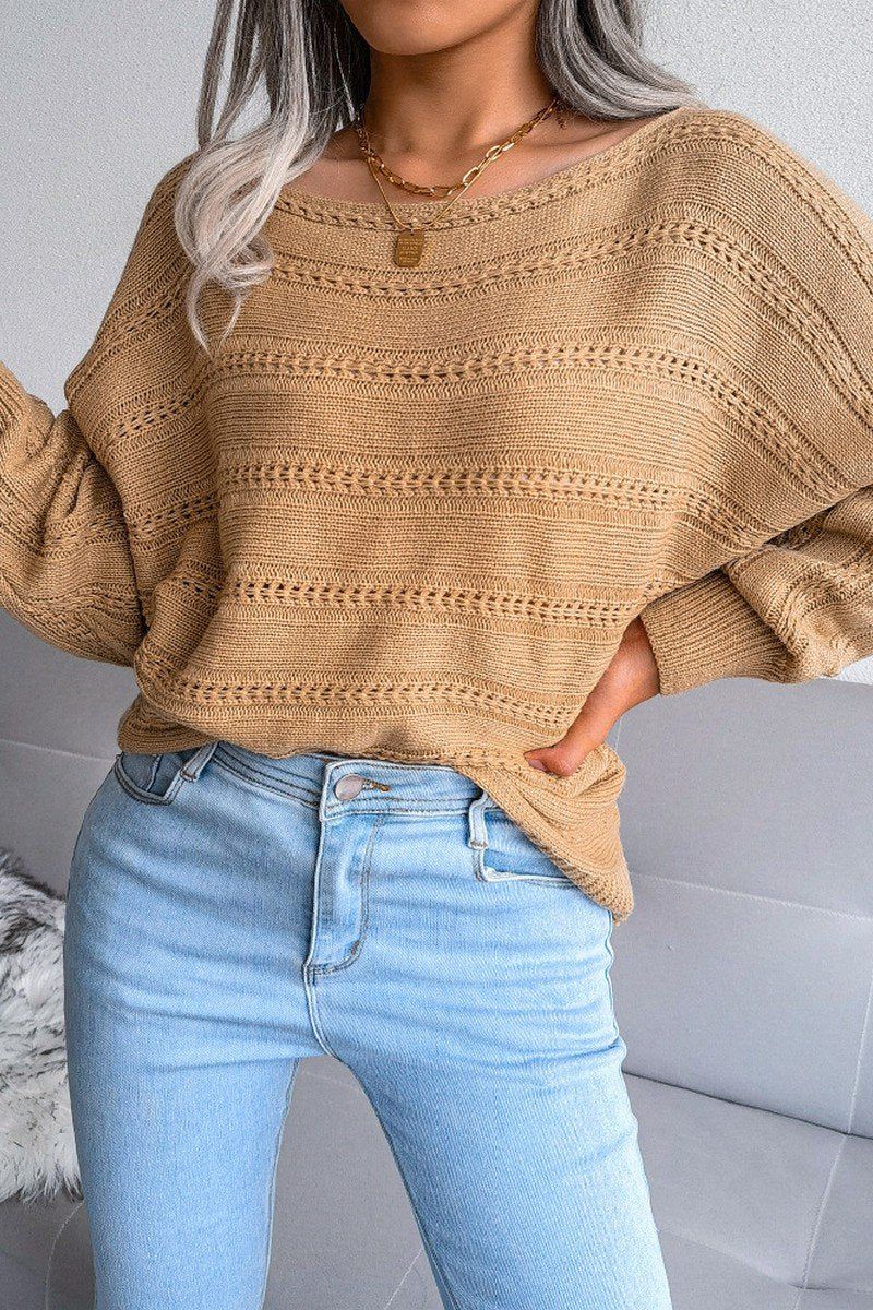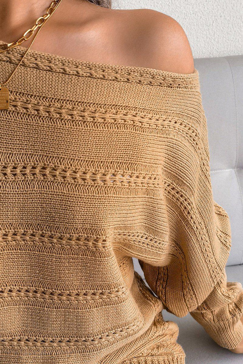 WOMEN CABLE KNIT BOAT NECK OVERSIZED SWEATER