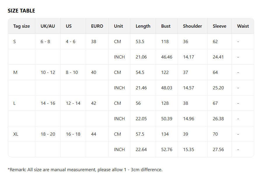 SIZES : S,M,L,XL