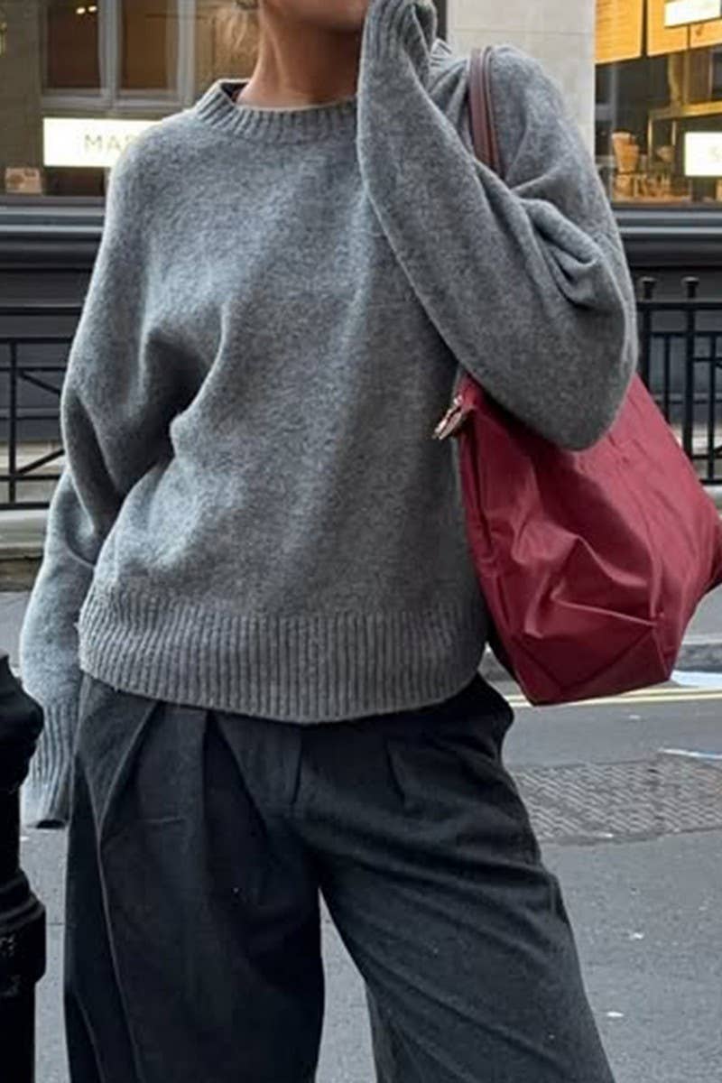 V NECK LONG SLEEVE CASUAL KNIT TOP