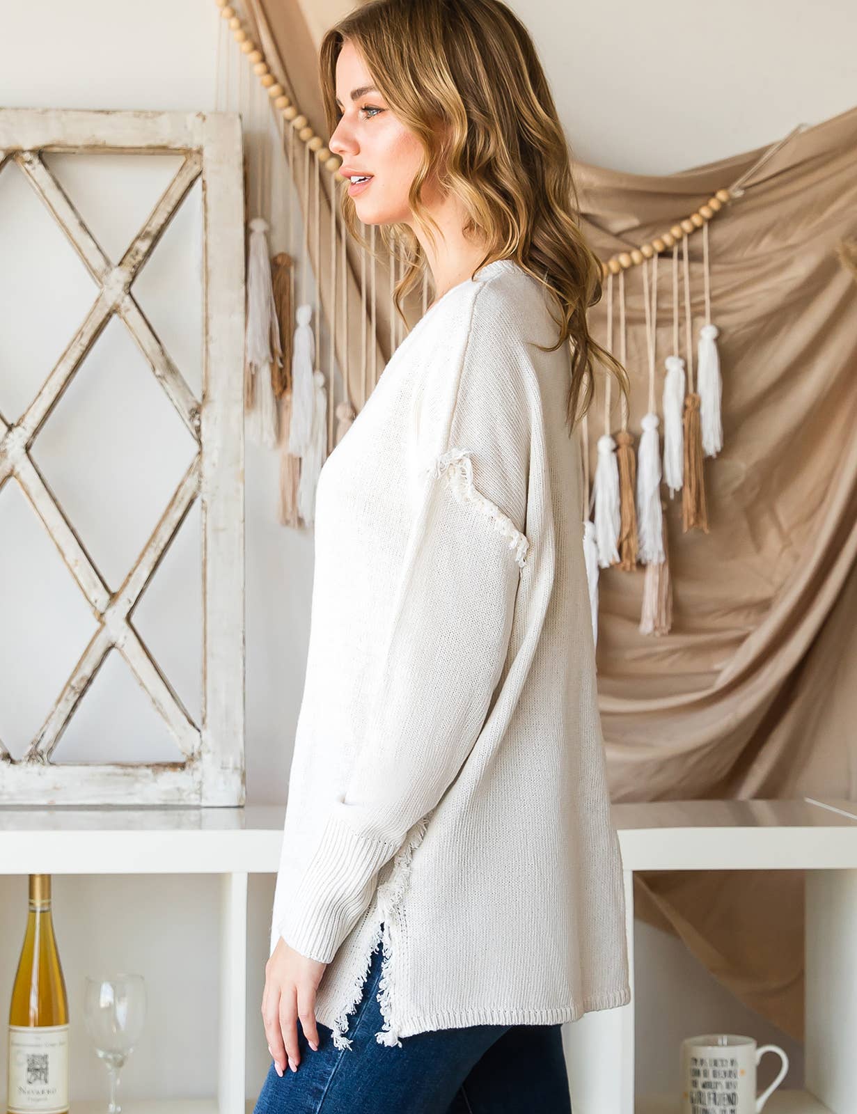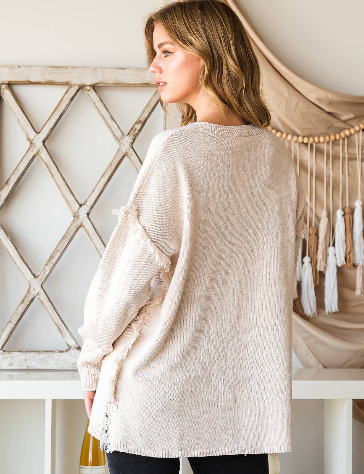 BUTTON DOWN FRINGE SHOULDER SWEATER KNIT TOP