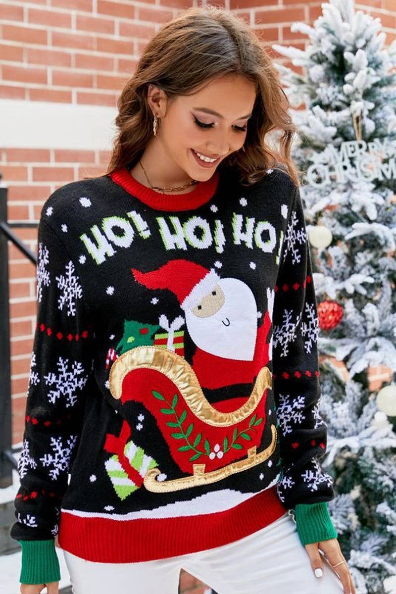 EMBROIDERED SANTA CLAUS PULLOVER CHRISTMAS SWEATER