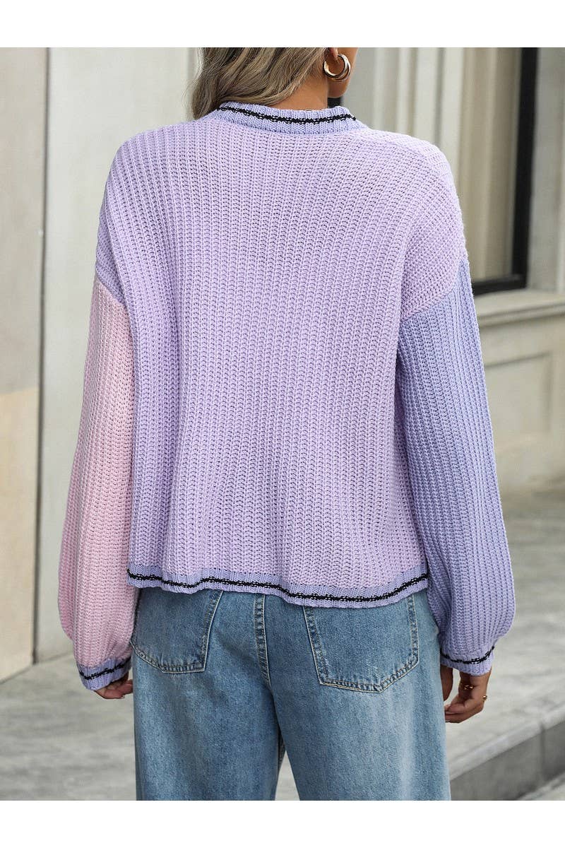 Casual Color Matching Long Sleeved Knit Sweater Cardigan