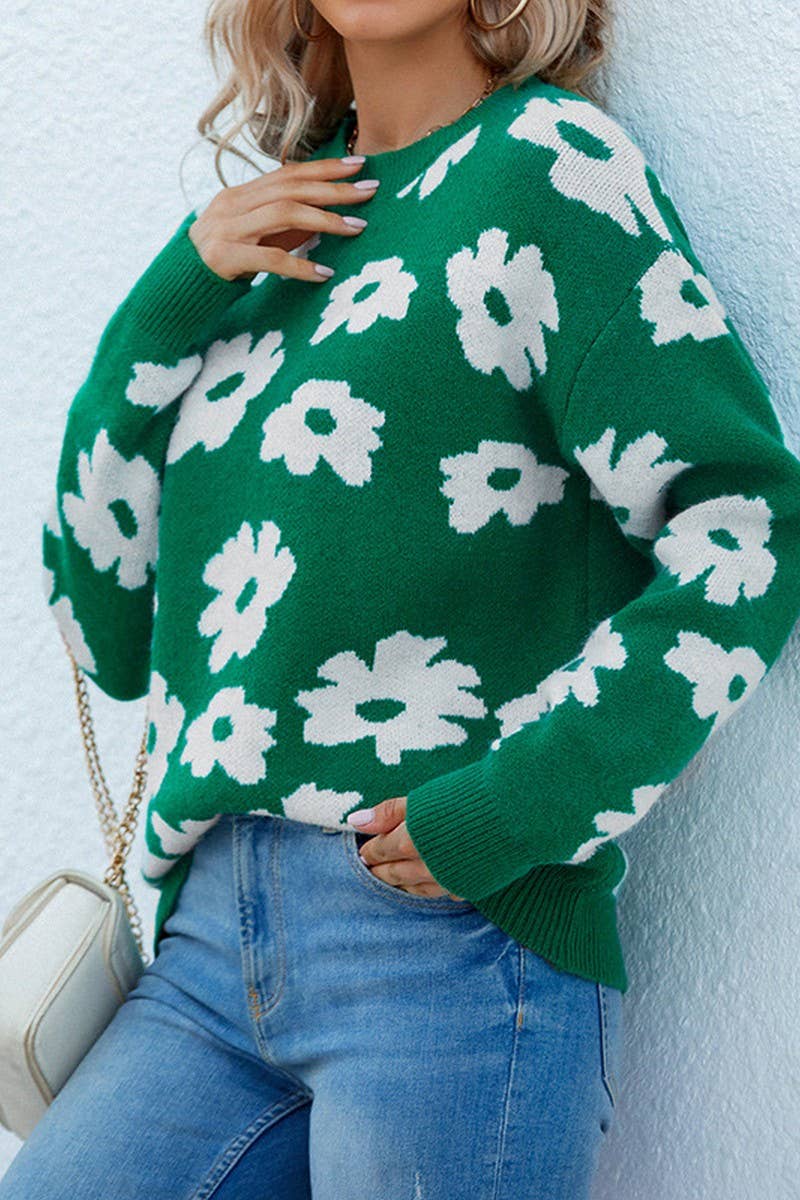 CREW NECK PULLOVER FLORAL KNITTED SWEATER