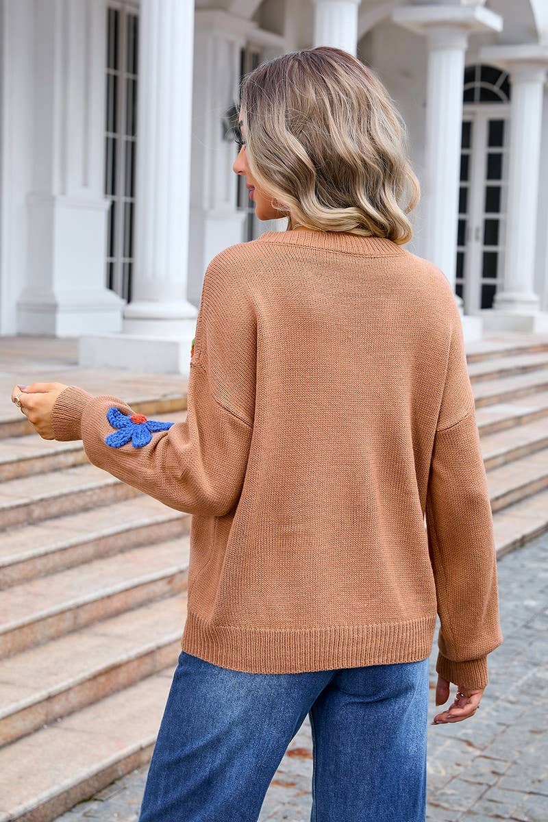 CASUAL FLORAL LOOSE CREWNECK SWEATER