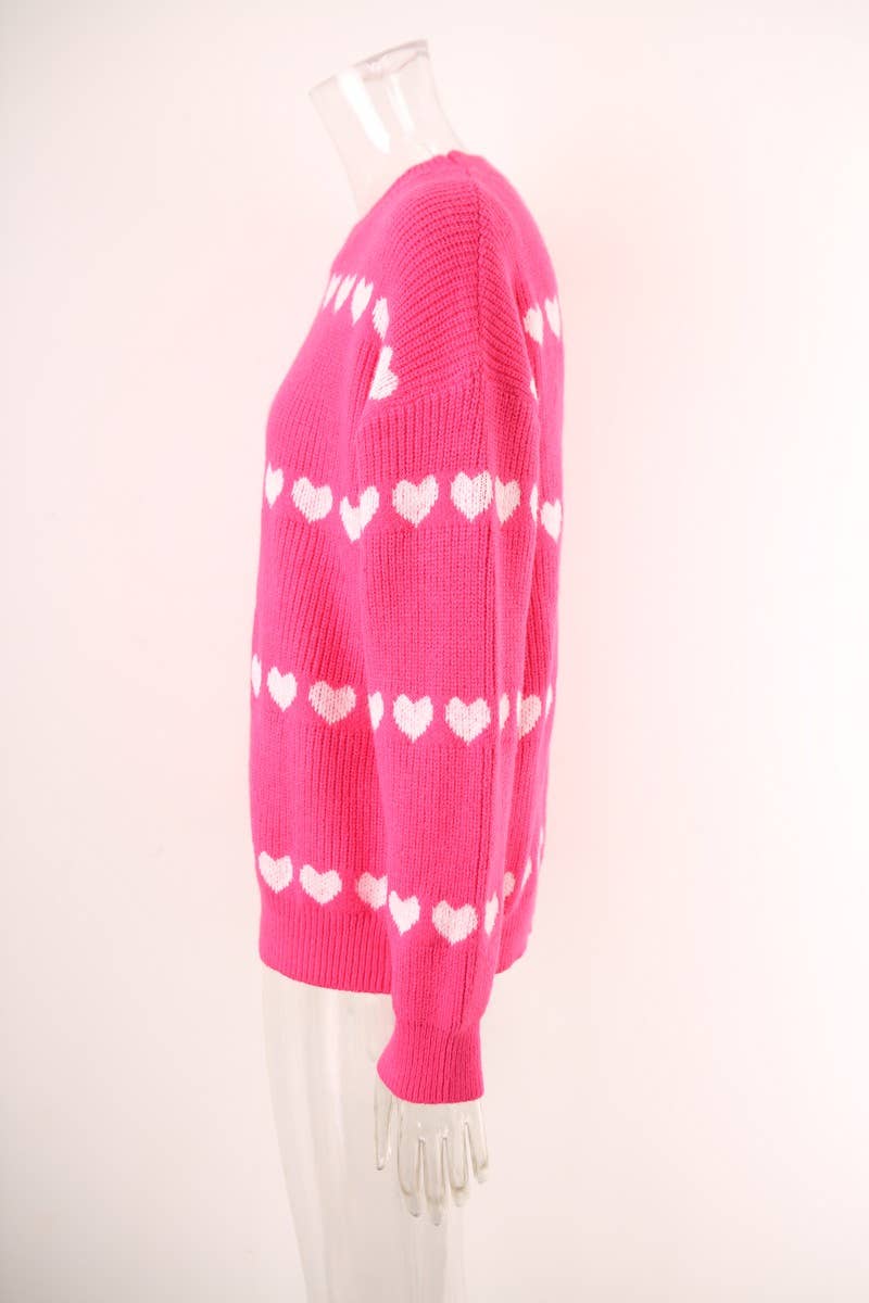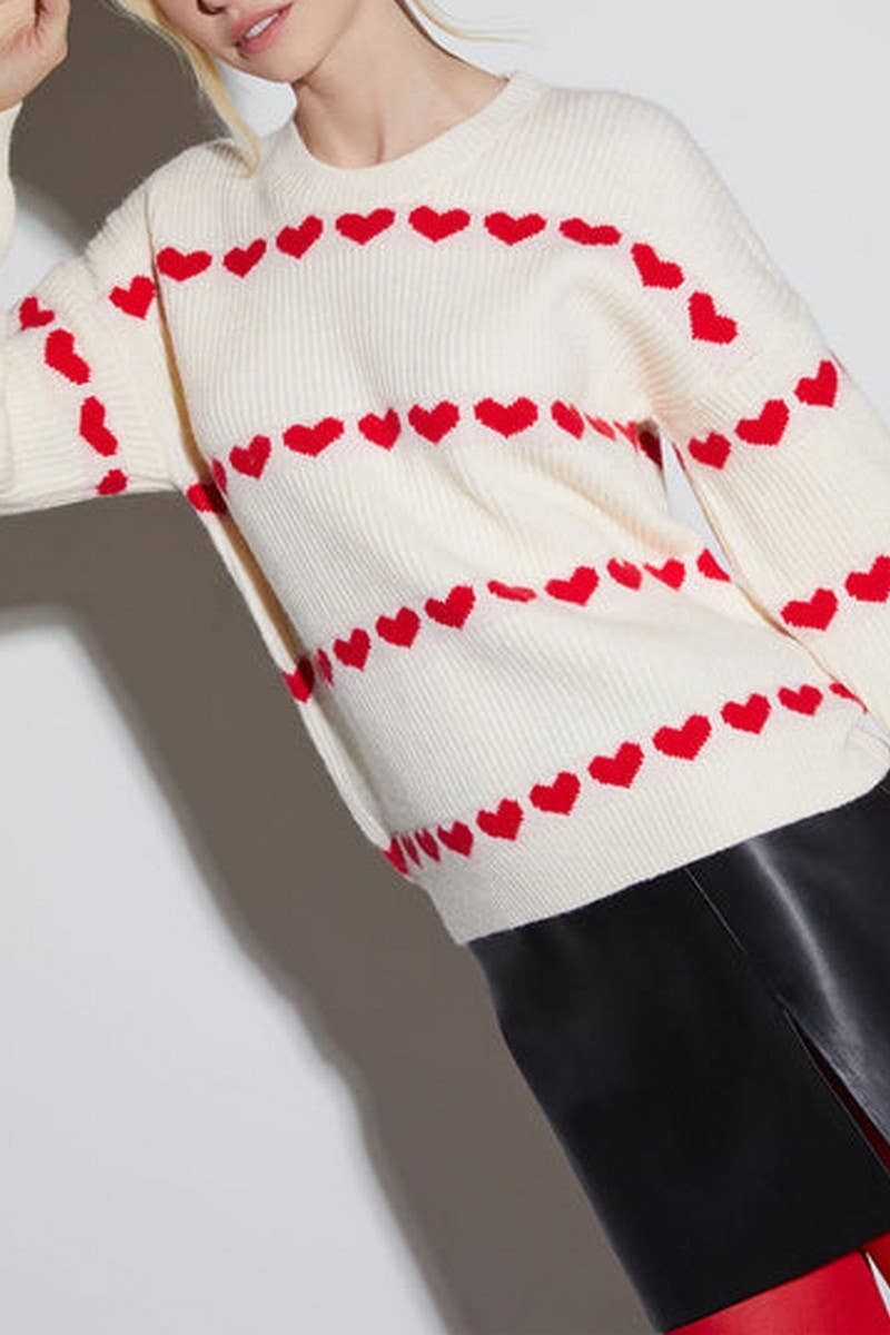 LOOSE ROUND NECK HEART PULLOVER KNITTED SWEATER