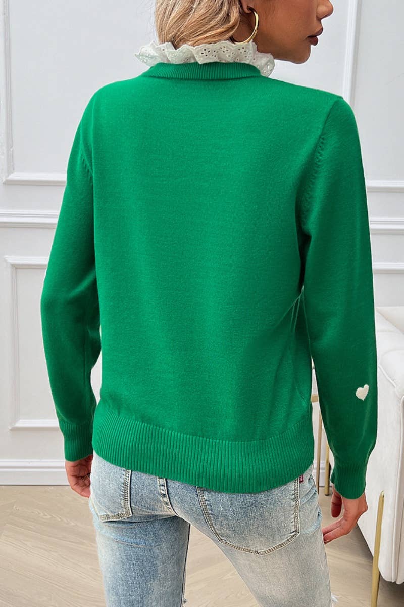LACE LACE NECKLINE LOVE LONG-SLEEVED SWEATER