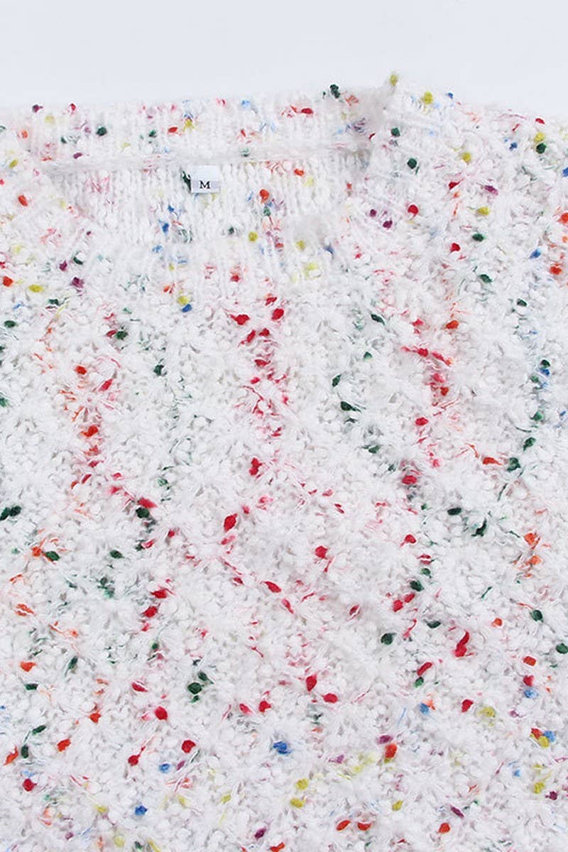 COLORFUL DOT ROUND NECK LONG SLEEVE KNIT TOP