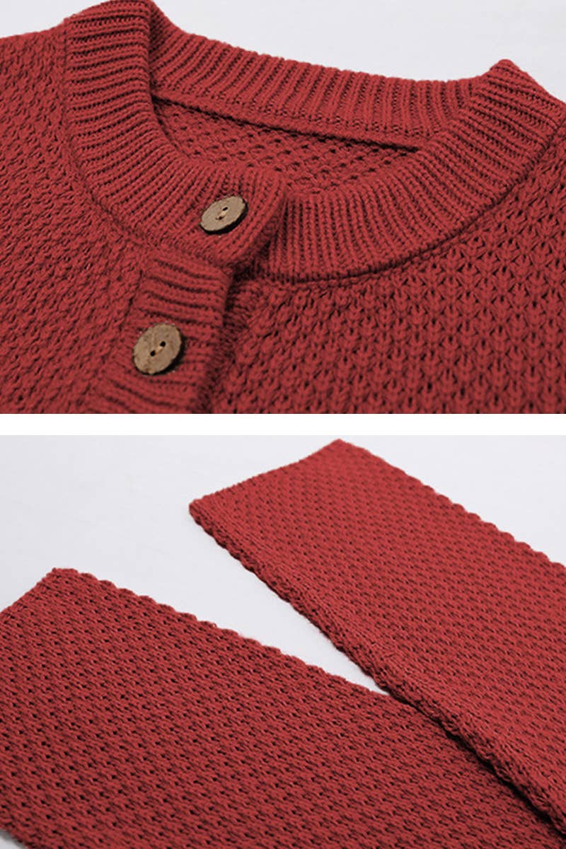 Long Sleeve Loose V Neck Button Tops Pullover Sweater