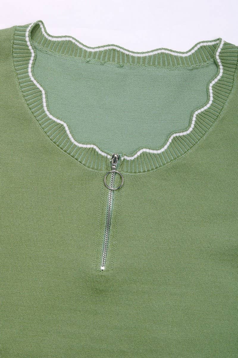 ZIPPERED CONTRASTING CREW NECK CASUAL SWEATER