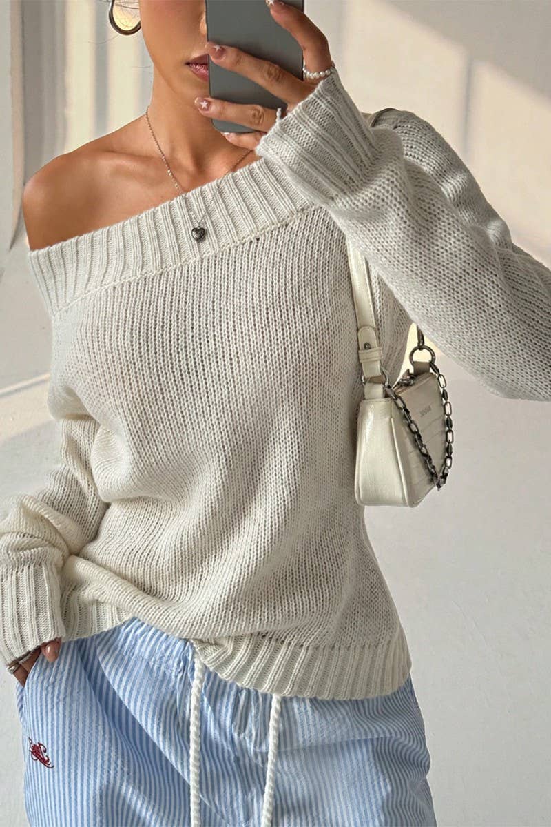CHIC OFF SHOULDER PULLOVER KNIT CASUAL SWEATER