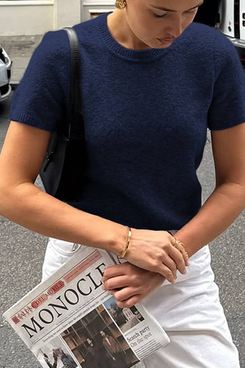 CASUAL SOLID SHORT SLEEVE KNIT TOP