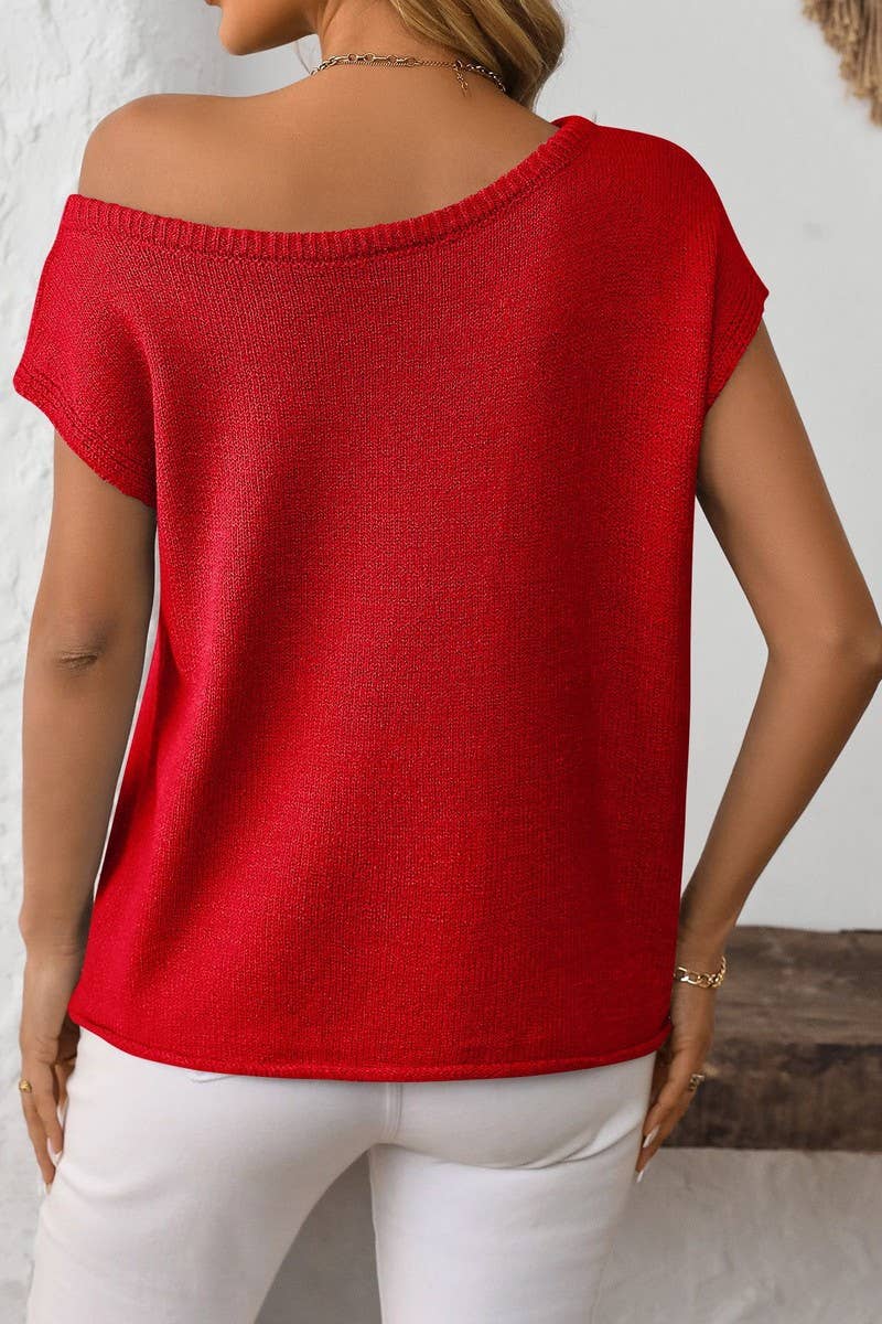 SOLID COLOR KNITTED SHORT-SLEEVED PULLOVER TOP