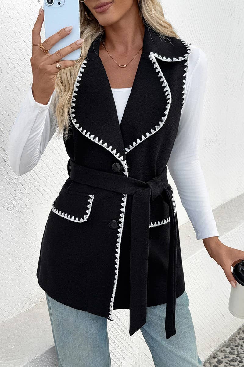 TIE FRONT LAPEL CONTRAST TRIM VEST JACKET