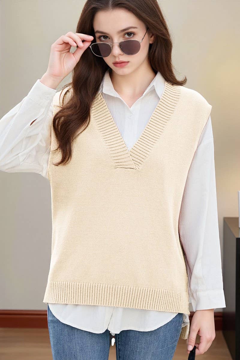 SOLID COLOR SLEEVELESS KNITTED VEST