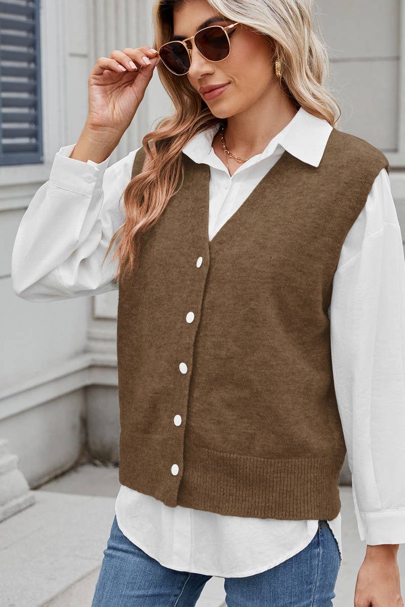 CASUAL BUTTON FRONT KNIT SWEATER VEST