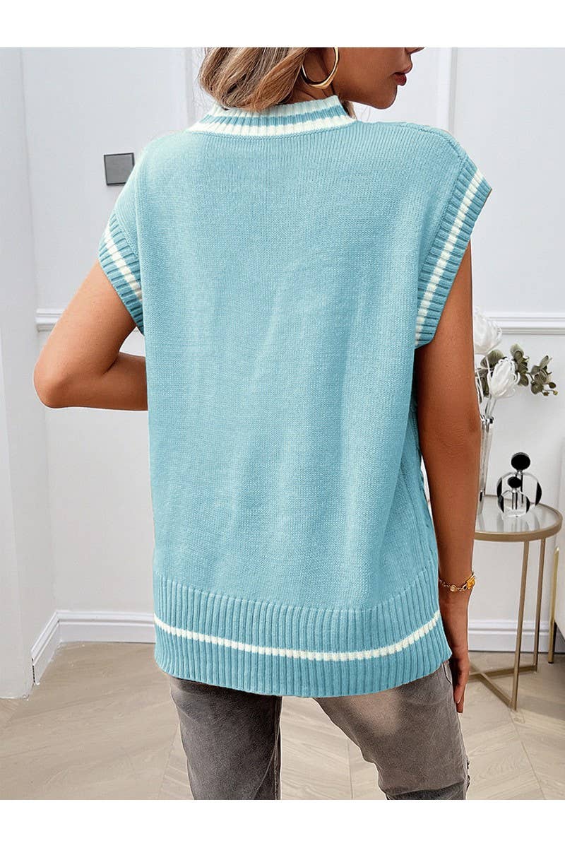 Casual V-Neck Color Matching Knit Sweater Vest