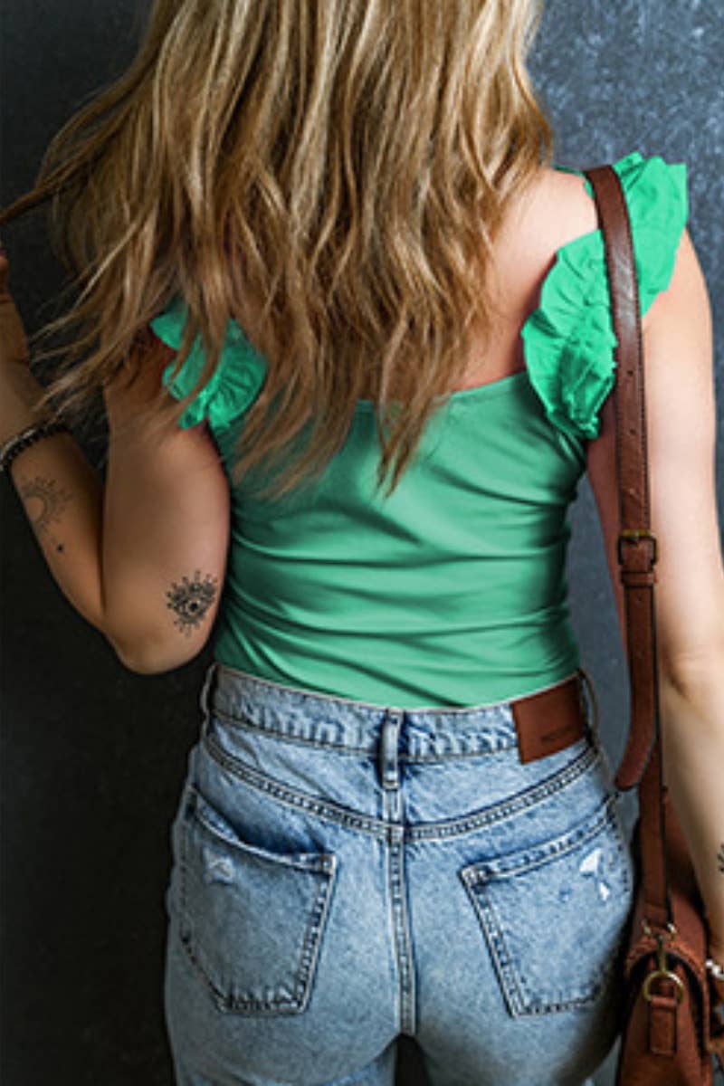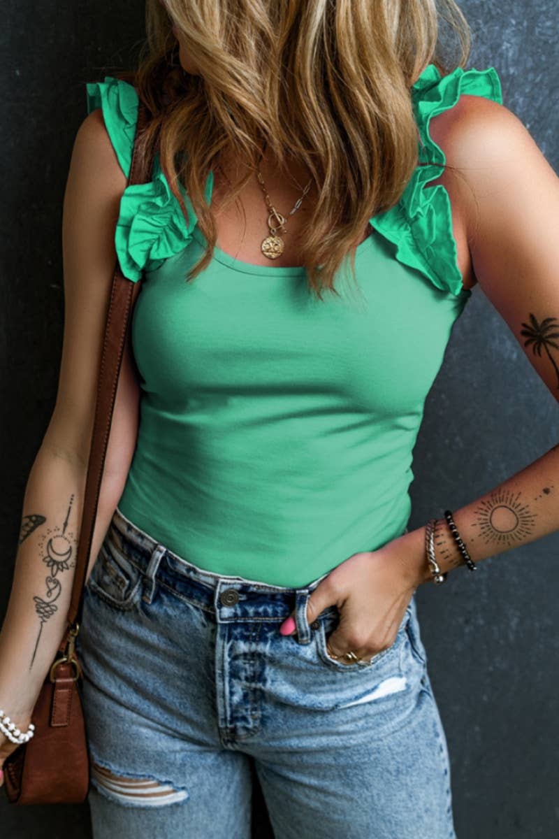 SUMMER SLEEVELESS TRIM TANK TOP WITH RUFFLES