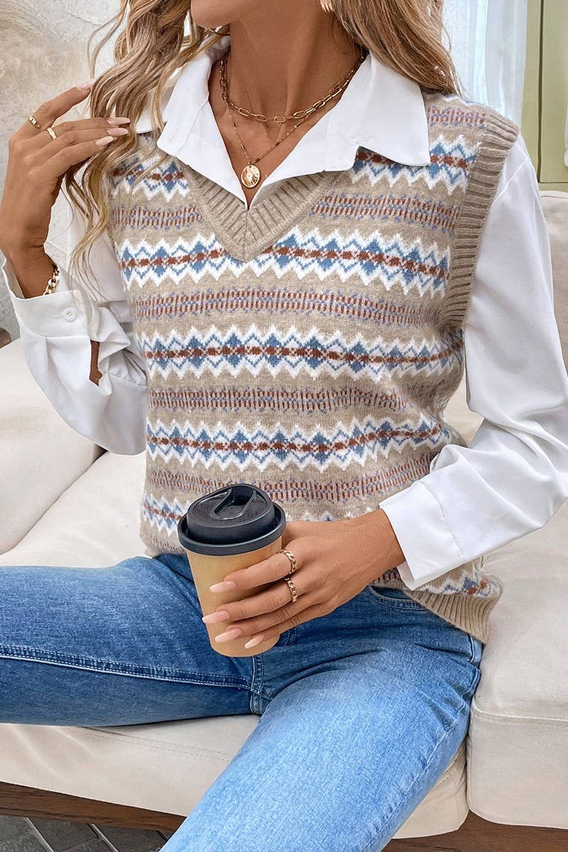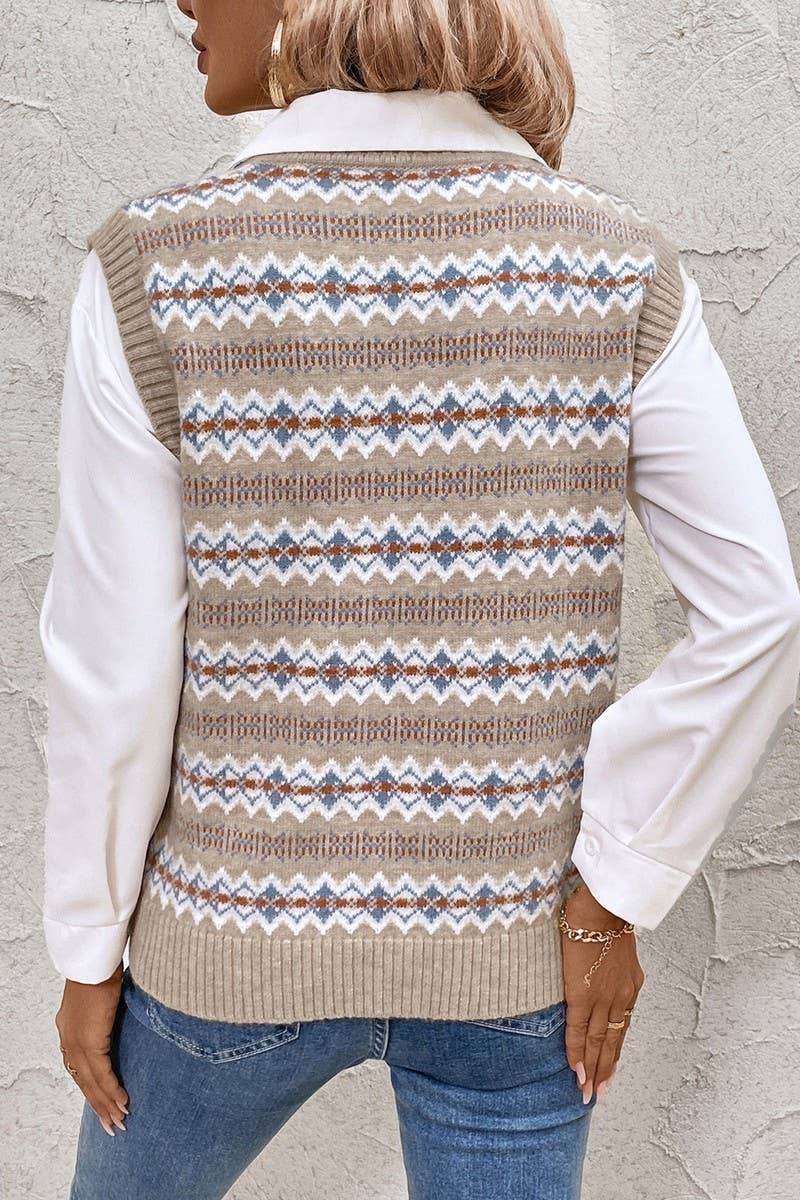 SLEEVELESS ETHNIC STYLE JACQUARD KNITTED VEST