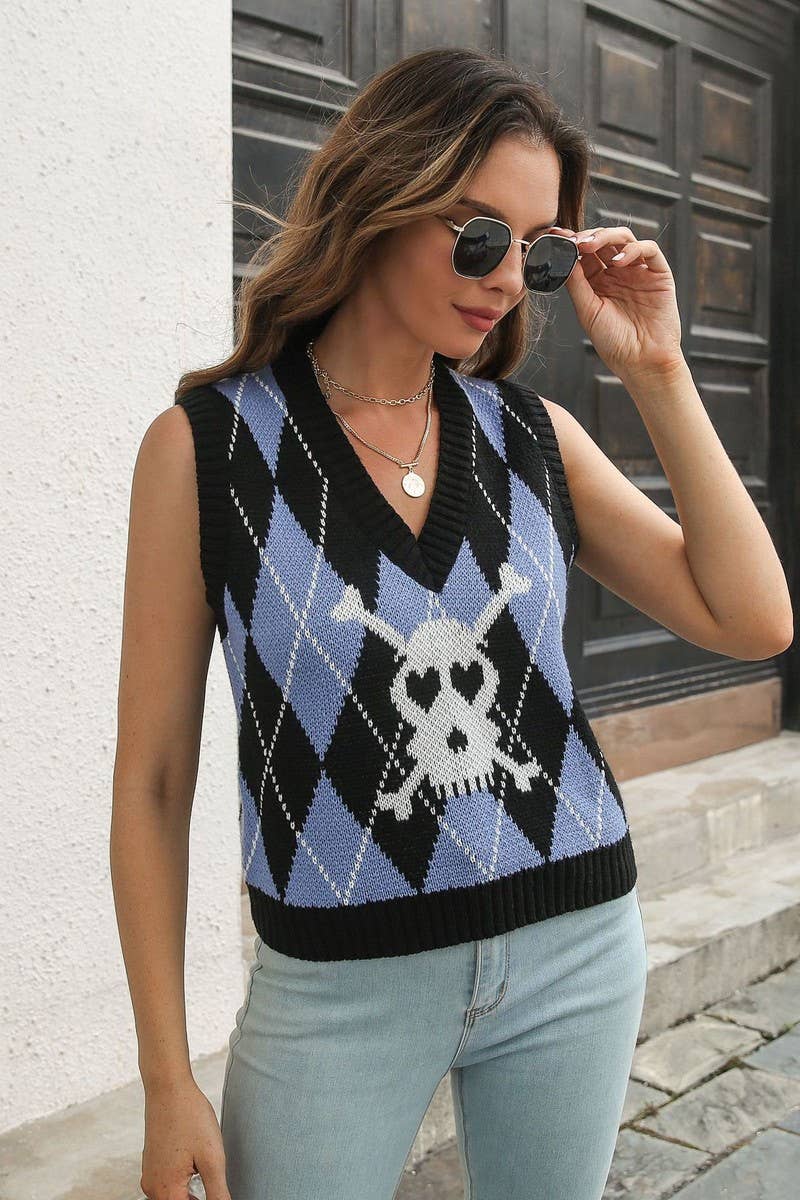 SKULL JACQUARD DIAMOND VEST SWEATER VEST