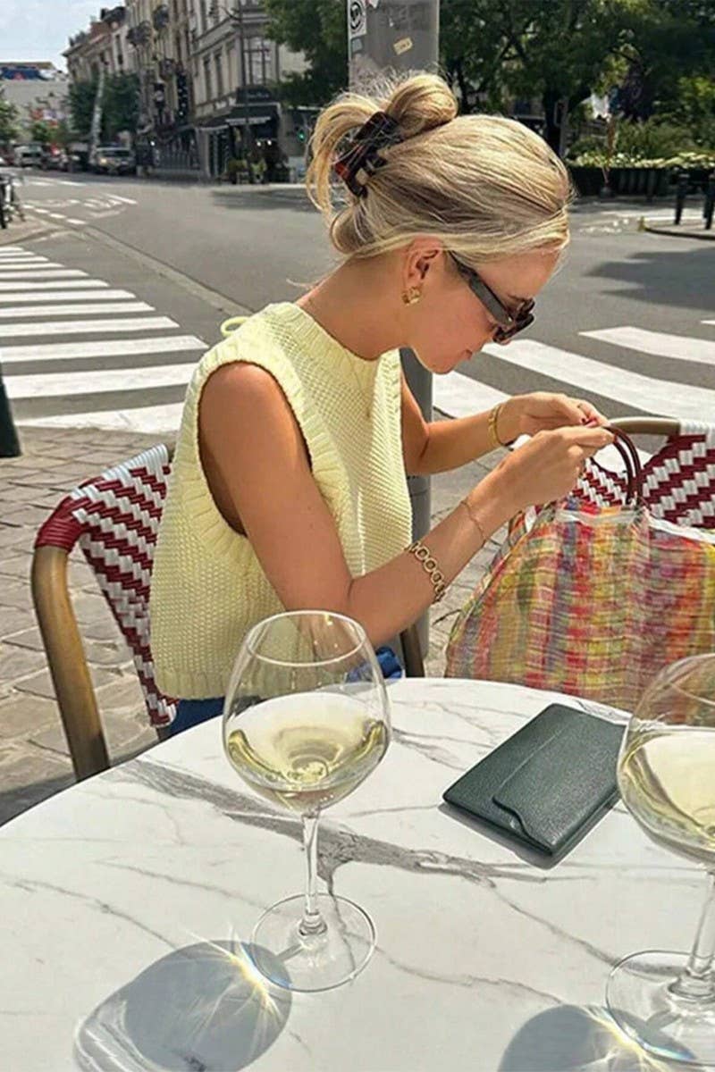CREW NECK KNIT OPEN BACK TIE VEST TOP