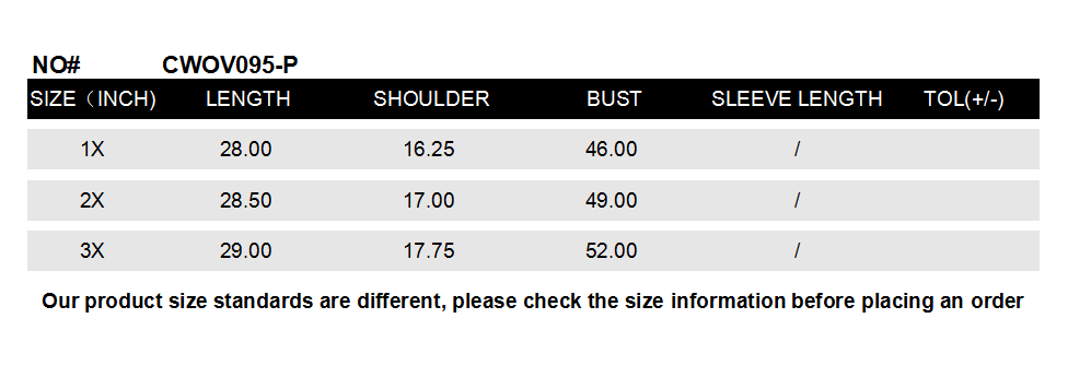 SIZE 1X / 2X / 3X