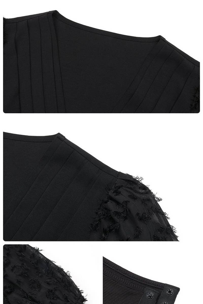 WOVEN JACQUARD SLEEVES V NECK LONG SLEEVE BODYSUIT