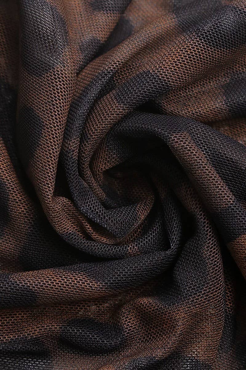 LEOPARD PRINT MESH PANEL TRUMPET SLEEVE BODYSUIT 100% POLYESTER SIZES : S,M,L,XL MADE IN CHINA