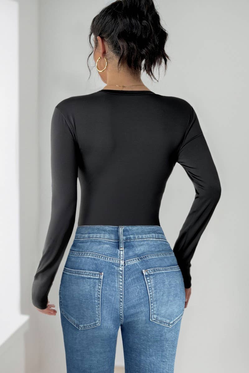LONG SLEEVE 3D FLORAL ROUND NECK BODYSUIT 100% POLYESTER SIZES : S,M,L,XL MADE IN CHINA