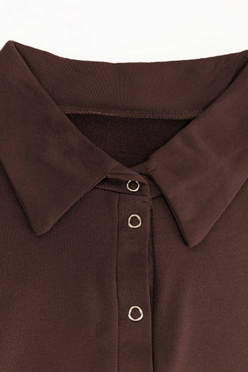 SLIM FIT LONG SLEEVE PLUSH LAPEL BODYSUIT 83% POLYESTER, 17% SPANDEX SIZES : S,M,L MADE IN CHINA