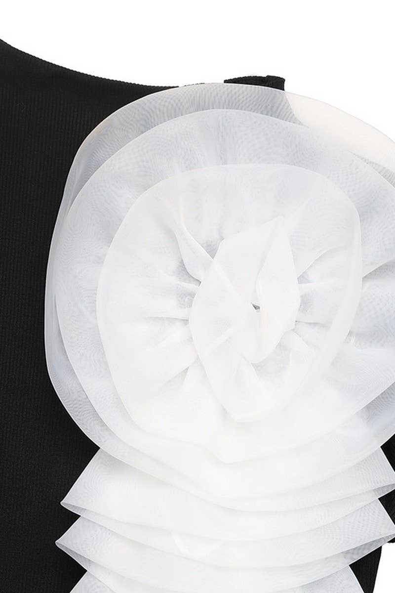 BLACK LONG SLEEVE JUMPSUIT WITH 3D FLOWER DETAIL 5% ELASTANE, 95% POLYESTER SIZES : S,M,L,XL MADE IN CHINA