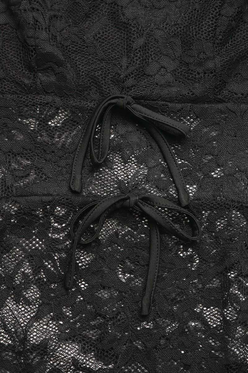 LACE PATCHWORK LONG SLEEVE V-NECK SHEER BODYSUIT 10% ELASTANE, 90% POLYAMIDE SIZES : S,M,L,XL MADE IN CHINA