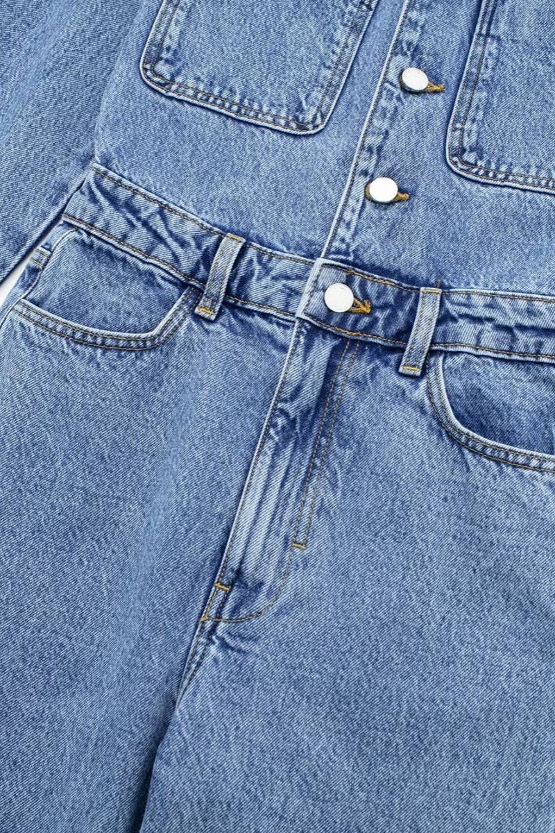 LAPEL SINGLE BREASTED STRAIGHT DENIM JUMPSUIT