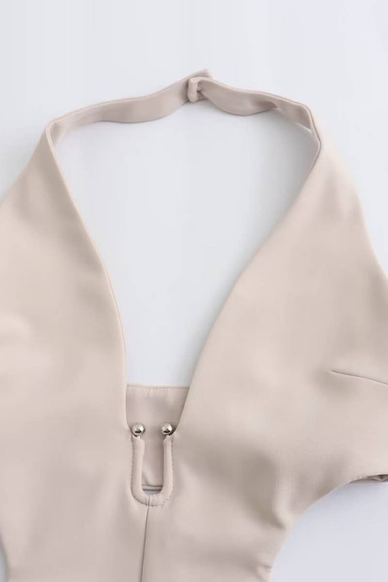 SOLID COLOR HALTER NECK BACKLESS LONG JUMPSUIT