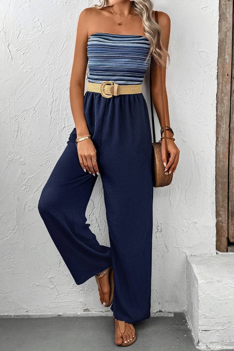 SUMMER CASUAL TUBE TOP STRIPED JUMPSUIT