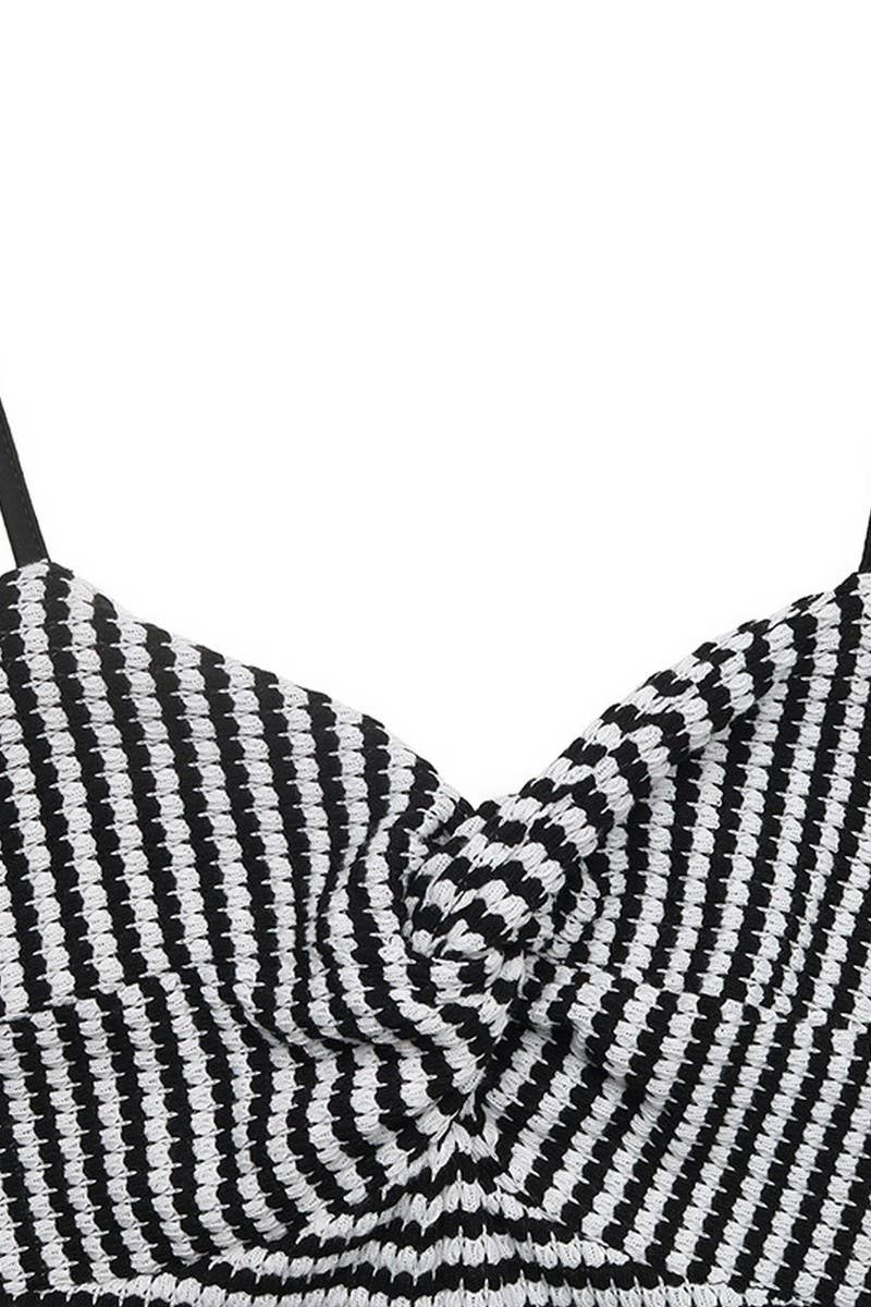 BACKLESS KNOT TEXTURED STRIPED SLEEVELESS ROMPER