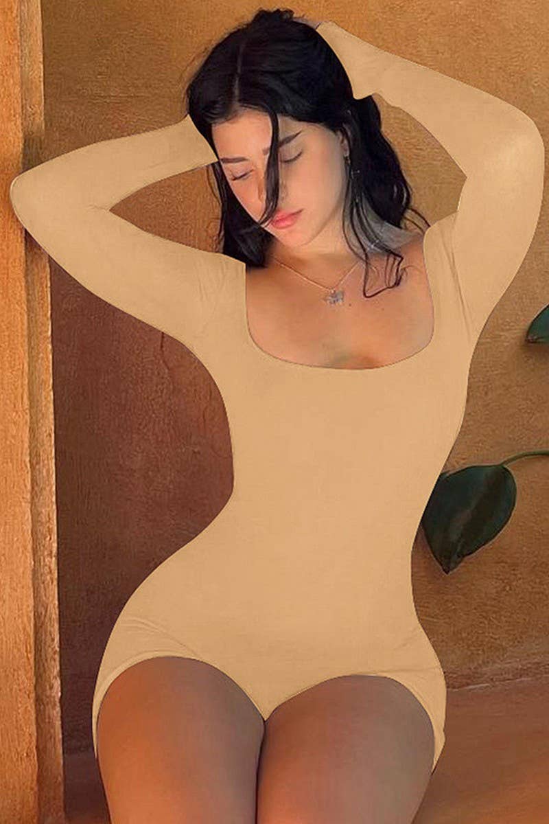 BACKLESS TIE LONG SLEEVE U-NECK YOGA JUMPSUIT
