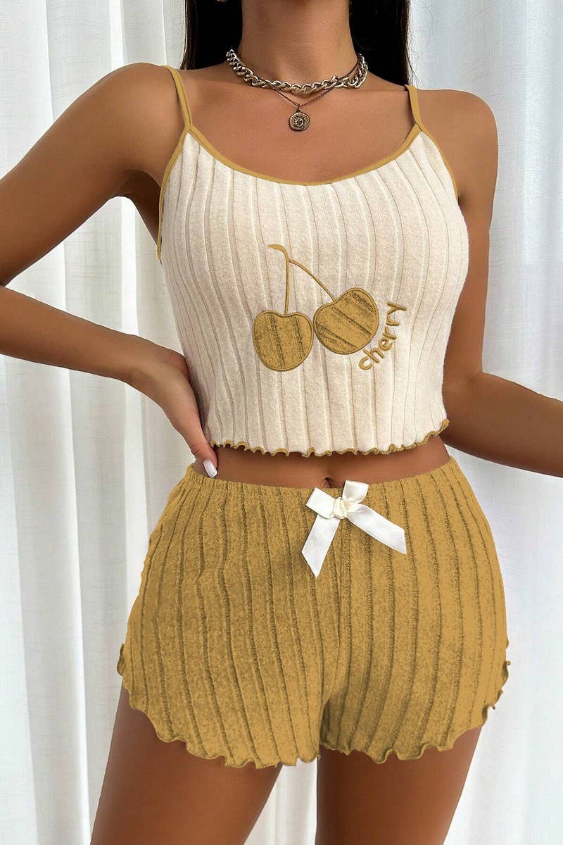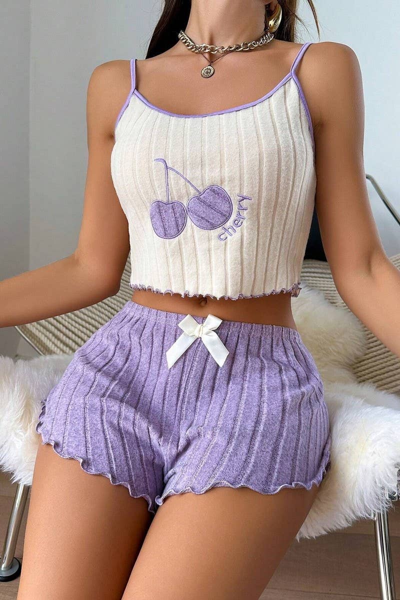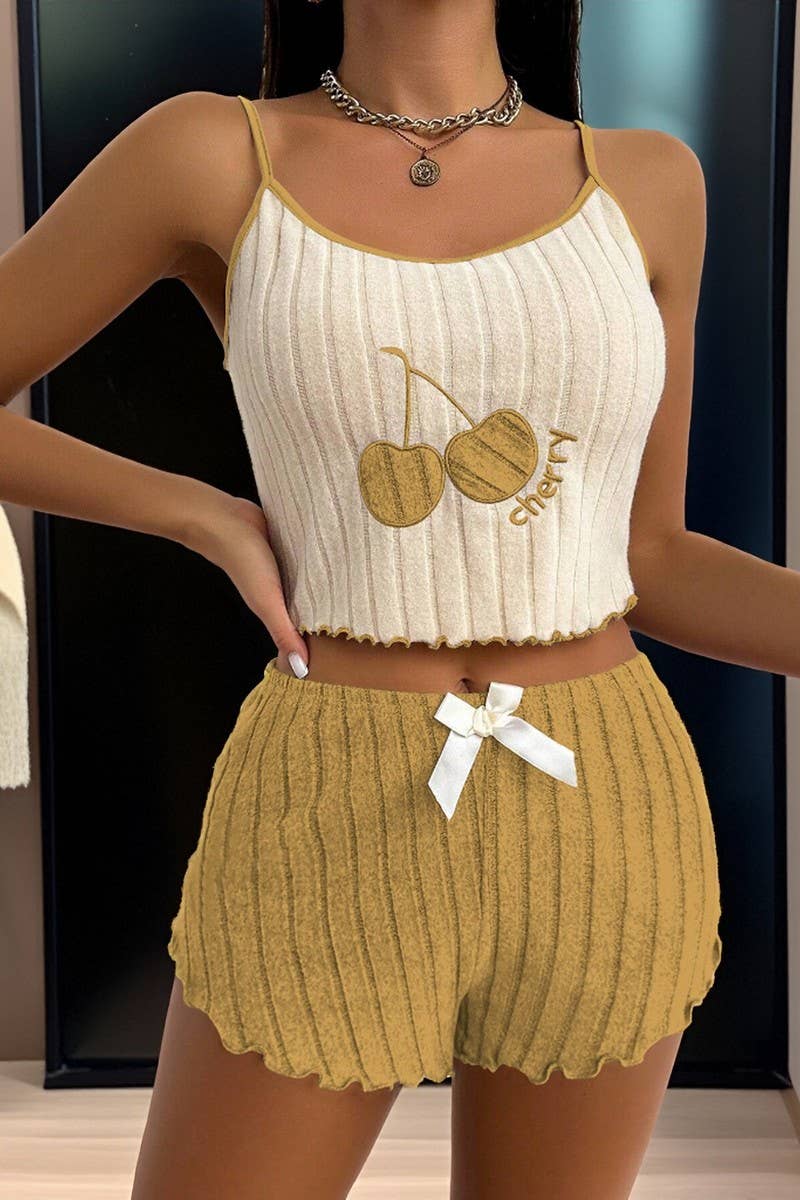 EMBROIDERED FLANNEL CAMI PAJAMA SHORTS SET
