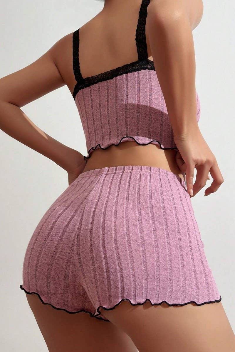 LACE TRIM RIBBED CAMI AND SHORTS LOUNGEWEAR