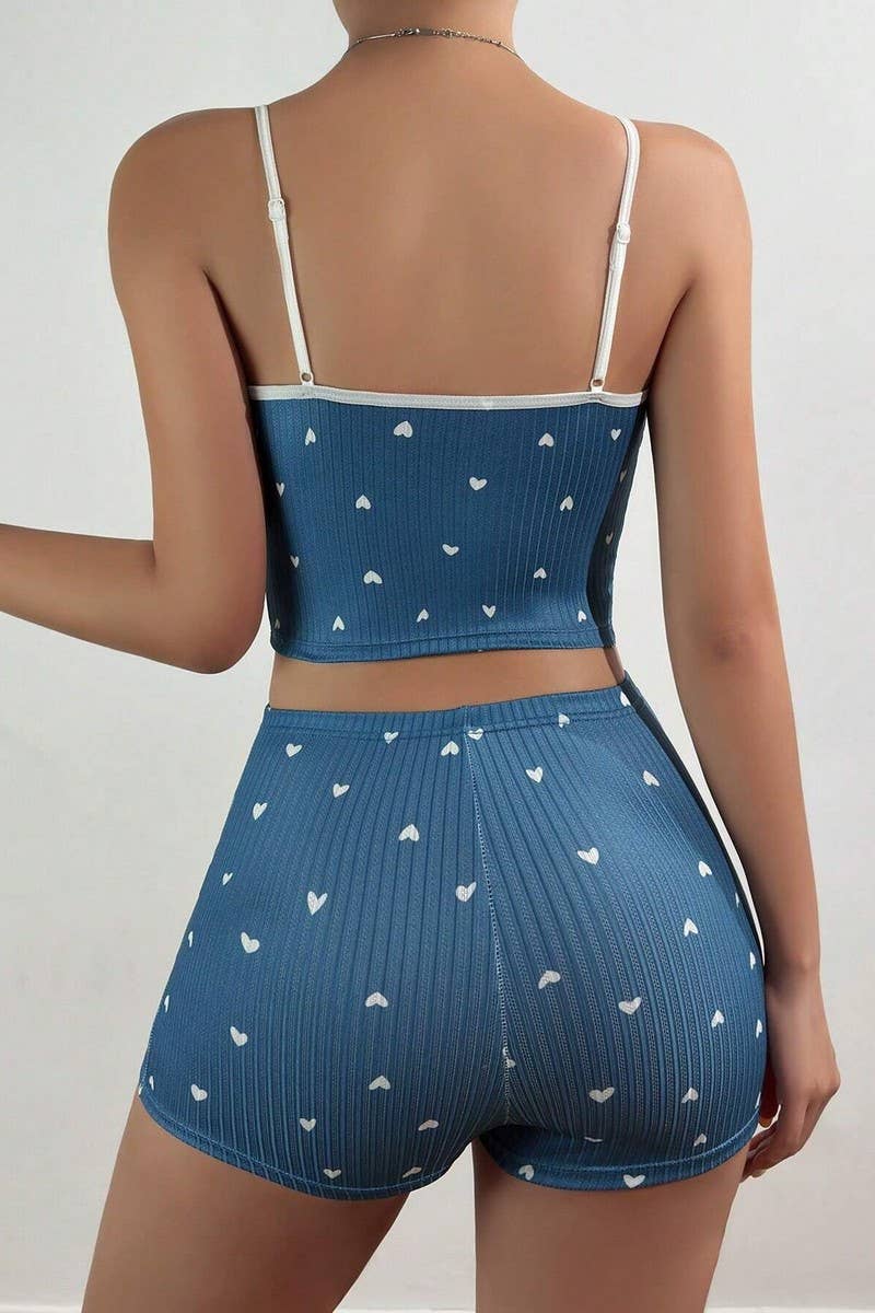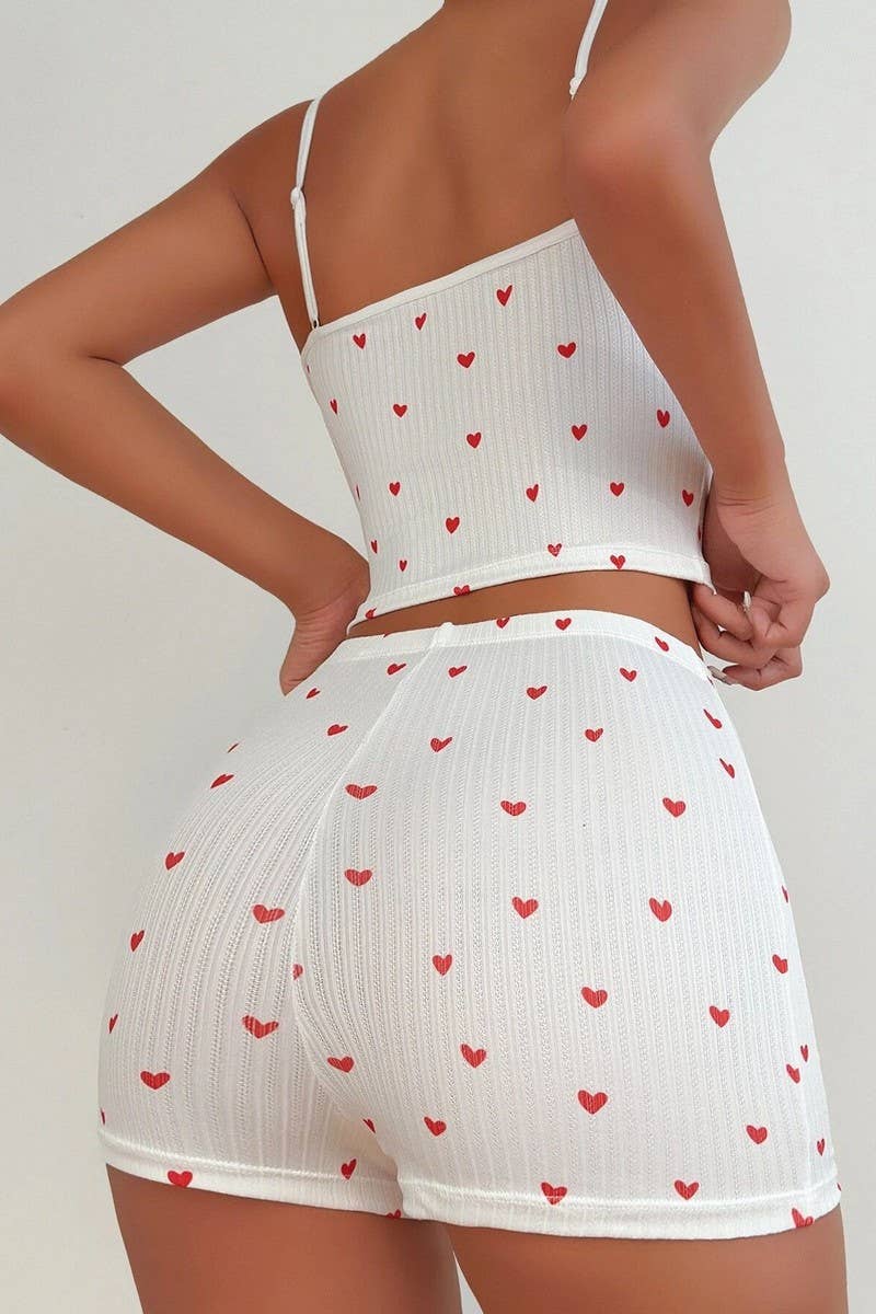 HEART PRINT BOW TIE CAMI PAJAMA SET