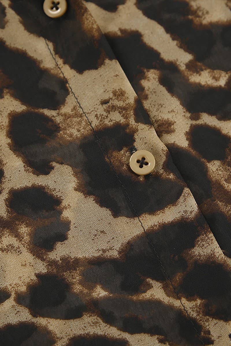 LOOSE LEOPARD PRINT LONG SLEEVE SHIRT SHORTS PAJAMAS SET
