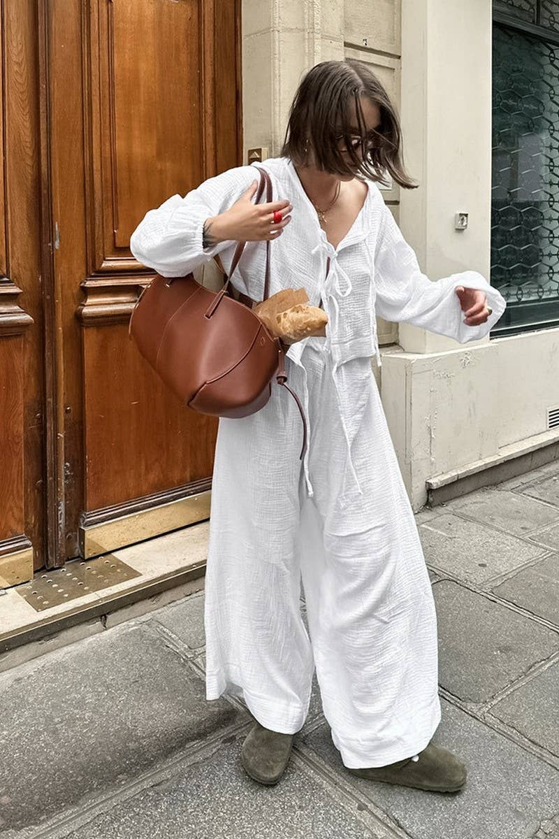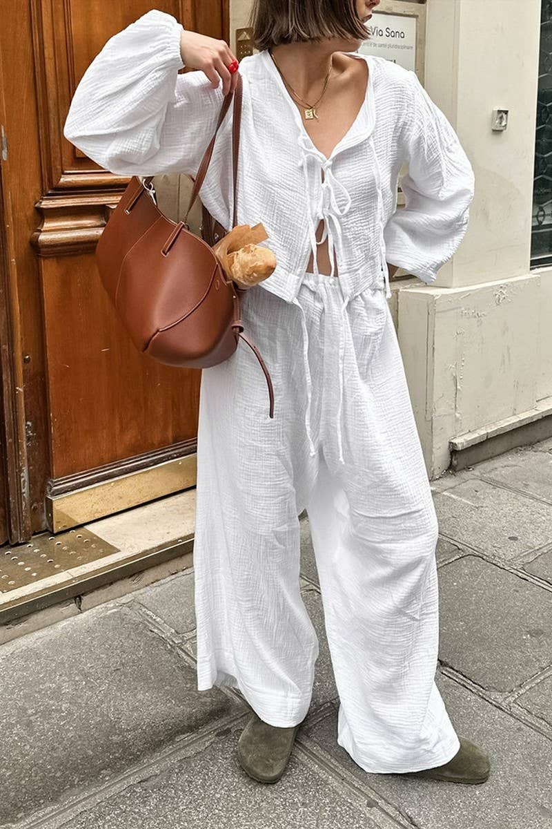 LOOSE LACE UP LONG SLEEVED PANTS PAJAMAS SET