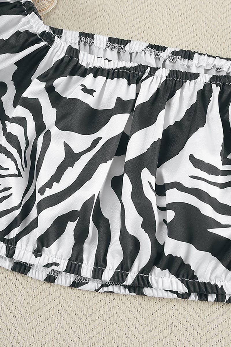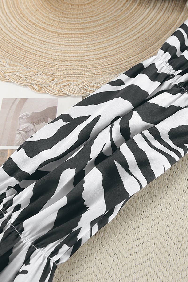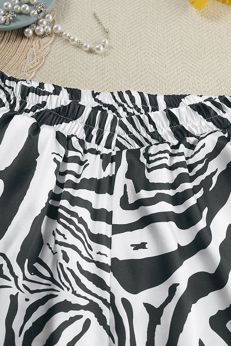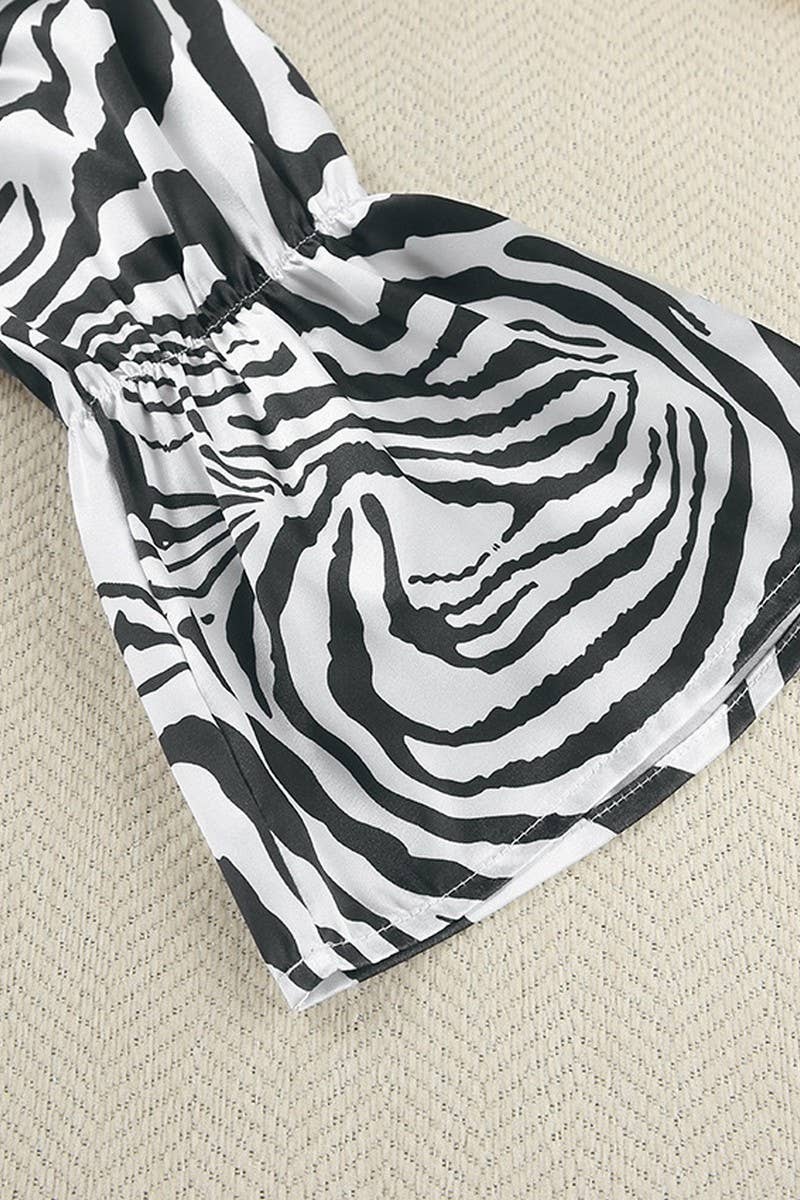 CASUAL LEOPARD PRINT OFF SHOULDER LONG SLEEVED PANTS PAJAMAS SET