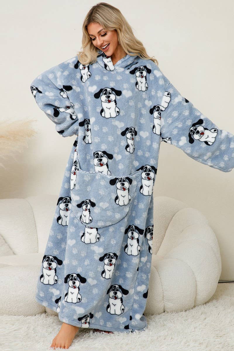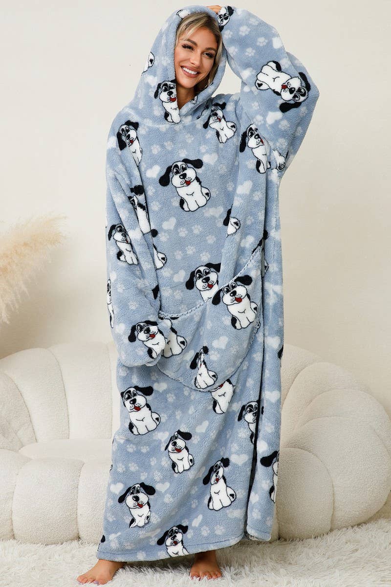 THICK CORAL FLEECE HOODED LONG HOME ROBE